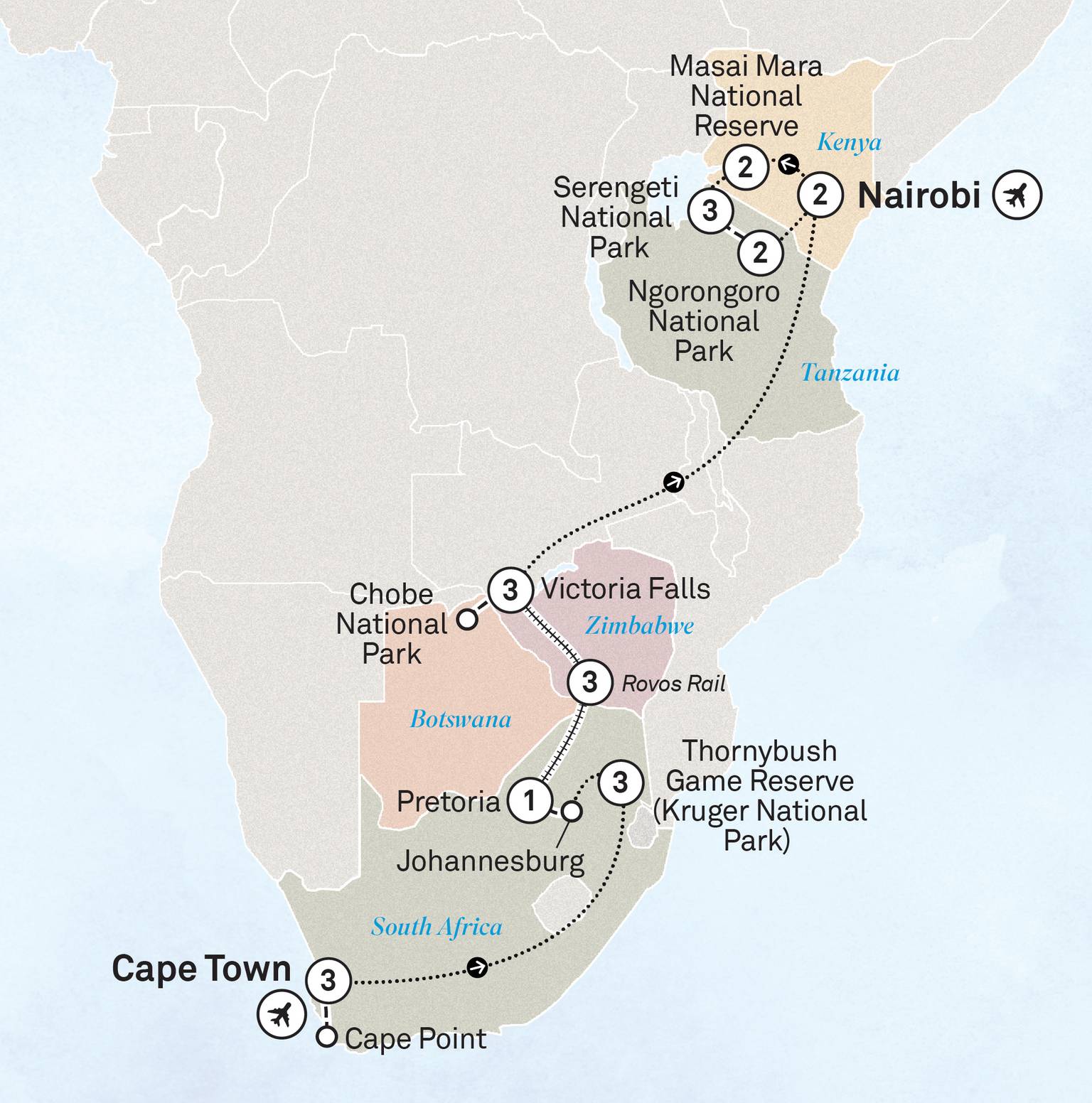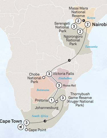 Duration 9 days Destinations Cape Town, Johannesburg, Hoedspruit, Karongwe Age Range All Ages Welcome Physical Rating Easy Room Type Singles, Shared Operator Cosmos From $4,759