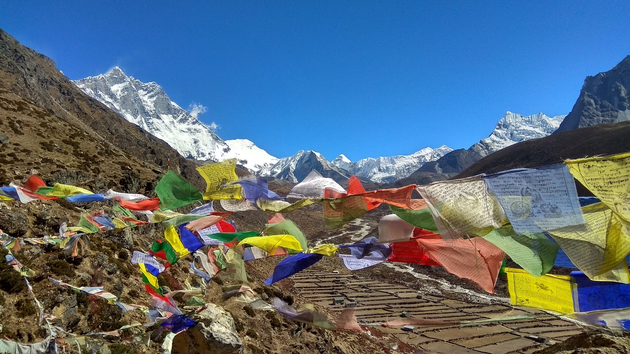 - Views of Pumori, Nuptse, Cholatse and Lobuche peaks