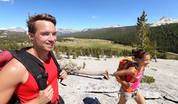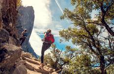 The high point on this trip is 10,850ft at Mt Hoffman, and the low point is 4,000ft in Yosemite Valley. The first day is about 3000ft of combined elevation gain/loss going up to Vernal and Nevada Falls and back. The second day is about 1800ft of elevation change. The third day is about 2540ft of change. The fourth day is about 1500ft of change. The last day is about 2020ft of change. This trip is along well maintained trails that are pretty safe. Some minor concerns include loose dirt, large stepping stones and tree roots. That said, there are multiple places in the park that have vertical exposure including the top of waterfalls, unmaintained mountain summits, or trail switchbacks. The top of Vernal/Nevada falls has exposed vertical drops with safety railings in place. Guides are great at coaching guests through areas that are potentially hazardous. The longest day is Day 3, when we'll cover about 10 miles. Thankfully we're only carrying small 10-15lb day packs each day, rather than heavy 35lb backpacking packs.