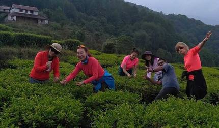 - Descend through forest and terraced fields