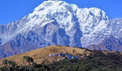 You hike through oak and rhododendron forests on the way to Mohare Danda. Throughout the day, you'll see Mt. Fishtail, Annapurna South, Dhaulagiri, and Tukche. By evening, you watch the sunset from Mohare Danda viewpoint before staying at an eco-community lodge.