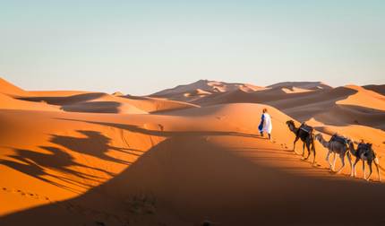 - Three-hour camel trek across Erg Chebbi dunes