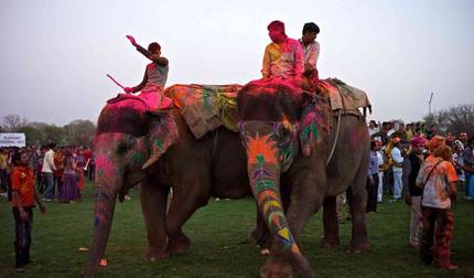 - Holi celebration with elephants