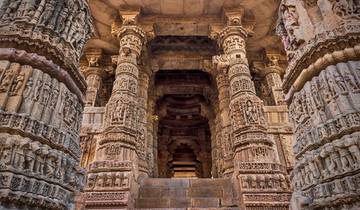 You'll land at Ahmedabad airport and head straight into Gujarat's historical sites. The Modhera Sun Temple comes first with its detailed stonework and architectural design. From there it's a drive through the region to Dholavira where you'll check in. Later in the evening, you'll walk through Rani ki Vav stepwell and the Panchasara Jain Temples, both showing off remarkable craftsmanship from centuries past.