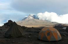 After breakfast and a quick briefing, you'll drive to Kilimanjaro National Park Gate, which takes about an hour from your starting point. Once there, you'll register and get going on the climb itself. The first section takes you through rainforest to Mandara encampment, and if you're up for it, there's an optional detour to Maundi Crater where you can see across Northern Tanzania and into Kenya. Keep an eye out for the tall Eucalyptus trees, various bird species, and Colobus monkeys hanging around in the canopy.