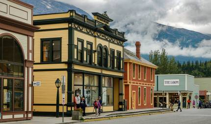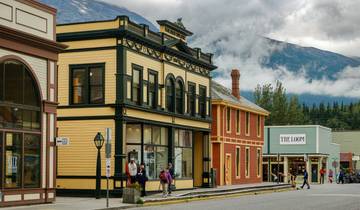 Leaving Watson Lake, you'll drive to Skagway, Alaska through beautiful Yukon scenery on roads that showcase the region's vastness. The Alaska Highway takes you through First Nation villages like Teslin and Tagish before you head south on the Klondike Highway. Carcross comes next, then you'll cross the alpine tundra of White Pass to reach Skagway on the Pacific coast. This town keeps its Wild West character as the gateway to the 1898 gold rush. The famous Red Onion Saloon, once a brothel and now a bar and restaurant, is worth a visit.