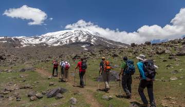 Following breakfast, you'll drive on gravel roads to where the hiking starts at about 1,900-2,000m elevation. Pack animals carry your gear while you bring just a day pack. The hike lasts around 4 hours with a 1,200m climb to reach base camp at 3,200m, where you'll sleep in a tent.