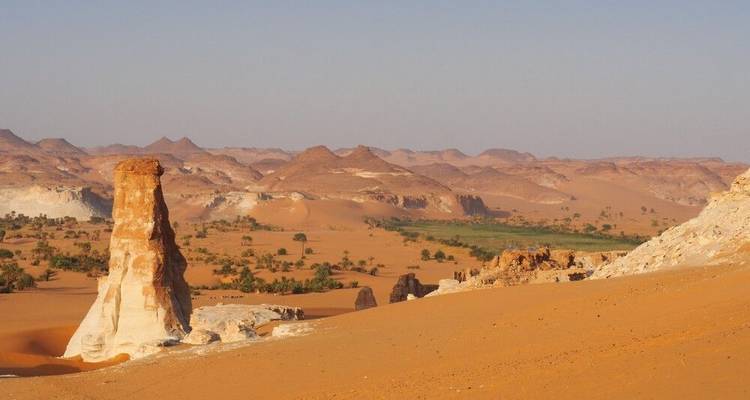 Leaving Trou au Natron, you'll drive through wadis and check out ancient rock art along the way. At Enneri Gonoa, you'll find 8000-year-old prehistoric engravings including the life-size 'Man of Gonoa'. After that, you'll pass through the green valley of Ennerie Zumi and visit Bardai before heading through gorges and volcanic terrain to reach Yebbi Bou with its distinctive oval houses and palm grove canyon nearby.