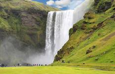 Travel the South Coast between sea, mountains, glaciers and waterfalls. Check out the black lava beach at Reynisfjara and its bird cliffs, then stop at Skogafoss waterfall where mist creates rainbows. Visit the Skogar Folk Museum with traditional turf houses, then see Seljalandsfoss waterfall and walk the trail behind it (bring a raincoat). Tour the Lava and Volcano Exhibition Centre about geology and volcanic eruptions, then have a farewell dinner at a restaurant in Reykjavik.