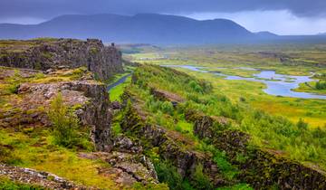 Start with a geothermal greenhouse tour to see how locals grow tomatoes year-round in this climate. Then head to Icelandic horse stables before driving to Gulfoss to see the double falls drop dramatically. You'll walk through the active geothermal area at Geysir and watch Strokkur shoot hot water up to 25 metres into the air. The day ends at Thingvellir National Park, a UNESCO site where you can see the North American and European tectonic plates visibly separating.