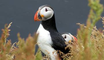 Start at the Folk and Transport Museum in Hnjottur, then head to Latrabjarg, the westernmost point of Iceland and Europe. Walk through the wilderness to reach the top of the cliff and spot puffins, razorbills, guillemots, fulmars, cormorants and kittiwakes. Weather permitting, you'll visit the red sand at Raudisandur beach where the colours shift with daylight and tides, and you might see seals lounging among the seabirds.