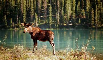 Move into the Rocky Mountains and visit the Rogers Pass visitor center for information and context. Then you'll explore Yoho National Park, including a detour to a natural stone bridge and Emerald Lake. You can walk around the lake or take an optional canoe trip before heading to Banff National Park.
