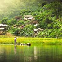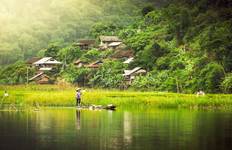After breakfast, you'll cycle around 10-12km through Ba Be National Park on a quiet route that passes rice fields, rivers, and traditional stilt houses with Karst Mountain views. You can watch locals fishing along the river as you go. Following the bike ride, you'll transfer to Phia Thap incense-making village where you'll see how traditional incense is made and meet people from the local Nung community. The night is spent at a homestay in the village.