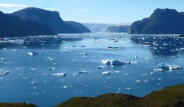 You'll descend from Mellem Camp over 4-5 hours through tundra with views of mountain valleys and the ice cap. In the afternoon, you'll navigate by zodiac boat through Qooroq Ice Fjord among icebergs to see one of Greenland's most active glaciers. Then transfer by RIB boat through the Tunulliarfik Fjord back to Qassiarsuk for the night.