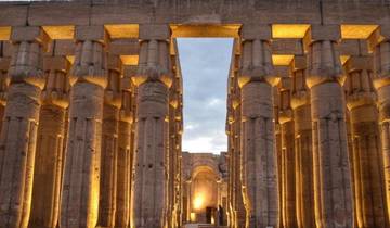 You'll have breakfast around 7:00 AM, and then meet your guide at 8:00 AM to explore the west bank of Luxor. You'll see the Valley of the Kings where pharaohs and nobles were buried in cliff tombs, and view the colossi of Memnon. Next comes a tour of the Temple of Queen Hatshepsut. After that, you'll return to the cruise, collect your luggage, and head to the airport or train station to complete your trip.