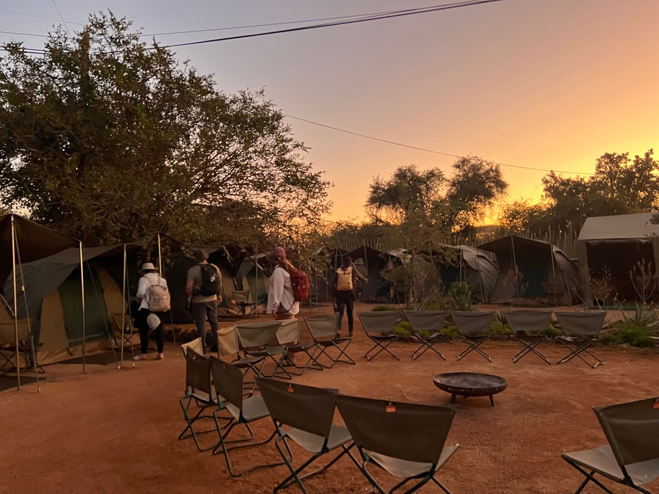 Today you're heading to the Okavango Delta, a unique landscape filled with wildlife. After a game drive, you'll settle into Contiki Safari Camp with two-person dome tents that have beds and linens ready. Dinner happens around the campfire under the stars while you swap stories from the day.