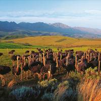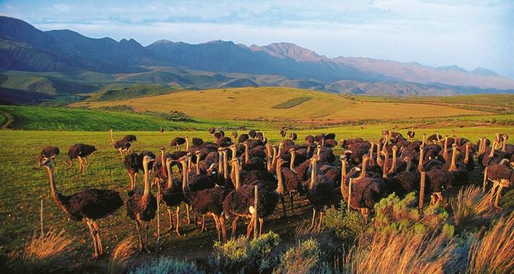 The drive along Route 62 takes you through the Little Karoo's semi-desert landscape with small villages scattered throughout. After a few hours, you'll reach Oudtshoorn, known as the ostrich farming capital. You're staying 2 nights at Surval Boutique Olive Estate, where you'll get a picnic lunch when you arrive. The estate has a swimming pool if you want to cool off after the drive, so plan to spend the afternoon relaxing.