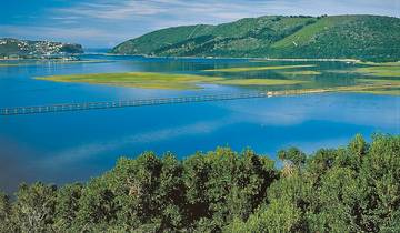 If you're interested, there's an early morning option to see meerkats at Buffelsdrift Game Lodge before starting your drive to Knysna. The town sits on a lagoon with two large rock formations at the entrance called the Knysna Heads, which create a striking sight when you arrive. You can explore museums, check out the fishing heritage sites, eat at restaurants, or take a walk through Knysna Forest, which is the largest forest area in South Africa. There's plenty to see if you want to stay active.