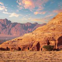 This morning after breakfast, you visit Hegra (Madain Saleh), Saudi Arabia's first UNESCO World Heritage Site with 94 monumental tombs built by the Nabataeans around the 1st century BC. You'll learn about the stone structures and ancient inscriptions before a 3-4 hour drive to Medina, arriving at your hotel as evening sets in.