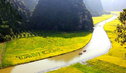 - Row through the scenic Tam Coc Caves