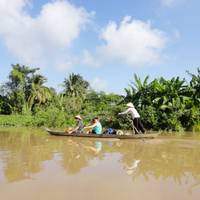 An early morning flight takes you from Danang to Ho Chi Minh City. A local guide meets you and you head onward to the Mekong Delta, often called Vietnam's 'rice bowl'. You'll board a sampan at Cai Be and cruise through waterways watching daily river life, passing colorful trading boats and houseboats. Stops let you visit cottage industries making popcorn, coco candies and paper. At Tan Phong Islet, a small rowboat explores hidden mangroves. Lunch happens in a traditional wooden home on Dong Hoa Hiep Island and you'll spend the night in Can Tho.