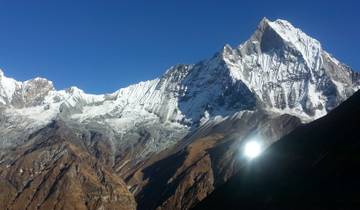 - Fly from Kathmandu to Pokhara, start trek