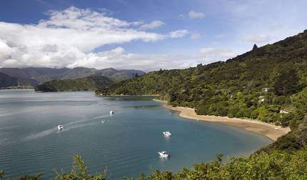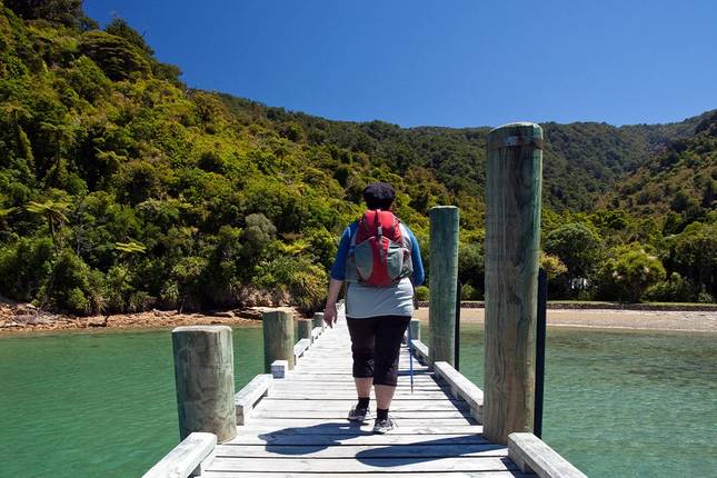 This morning you'll wake up to the sounds of the native bush and start hiking along the coast through forest. You'll pass Big Bay and Camp Bay on your way to Punga Cove in the Marlborough Sounds. The settlement there is small and quiet, and there's a local place to grab lunch if you're interested. From there the afternoon is yours to use however you like, whether that's taking a kayak out on the clear water or just hanging around your accommodation's pool area.
