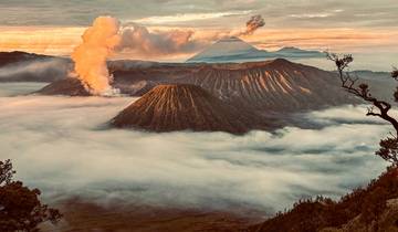 You'll see the sunrise over Mount Bromo's volcanic landscape early this morning. A 4-wheel drive jeep takes you down into the caldera, and you'll climb the stairs up to the crater rim for a closer look - or you can choose a horseback ride instead. Back at your accommodation for breakfast, then you'll continue on to Kalibaru with lunch stops along the route.