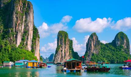 Drive through the Vietnamese countryside to Halong City. You'll board a junk boat and cruise through Halong Bay surrounded by nearly 3,000 limestone islands. A freshly prepared lunch comes on board, and you'll spend the evening relaxing in your cabin, on deck, or at the bar.