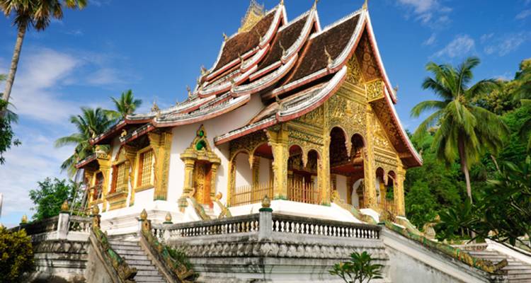 Fly to Luang Prabang, Laos, and transfer to your hotel. In the afternoon, a guided city tour shows you why this UNESCO World Heritage site is special, starting at Wat Xieng Thong. You'll hike up Phou Si Mountain for panoramic views, then experience a traditional Baci ceremony and Lao-style dinner at The Bamboo Experience.