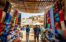 After breakfast, you'll travel from Marrakech to Essaouira on a 2.5-hour scenic drive through argan tree landscapes. There's an optional stop at a women's argan oil cooperative along the way if that interests you. When you arrive at this UNESCO World Heritage coastal town, your guide will walk you through the charming medina, taking in the historic Skala de la Kasbah, the fishing port, and local artisan workshops. You'll get a feel for the town's relaxed vibe with its whitewashed buildings and Atlantic beaches. Try fresh seafood at a local restaurant, then you'll have free time to wander around before checking into your accommodation.