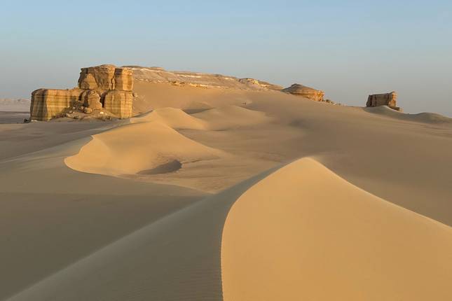 This morning you'll travel to the Valley of the Whales, a UNESCO World Heritage Site where you'll see fossilized whale remains that are about 40 million years old scattered throughout the area. It's a pretty unique landscape for walking around and understanding how this desert was once covered by water. After spending time exploring there, you'll head to Magic Lake for a picnic lunch surrounded by sand dunes and open desert. From there, you'll begin your drive back toward Cairo, arriving by evening and heading back to the city.