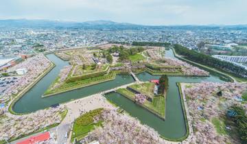 Visit the lively fish market for a glimpse of local culture. Go up Goryokaku Tower for panoramic views and see the star-shaped fortress design. Explore the castle area at leisure, then head to Onuma's magnificent natural setting with small islands and free time for boat rides or scenic walks. Have lunch at a local restaurant, then travel along the coast to Noboribetsu's volcanic landscape. Walk through Jigokudani steam vents and see Lake Oyunuma before arriving in Sapporo.