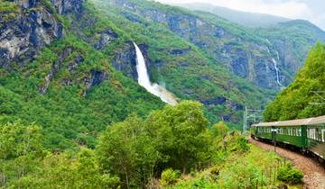 Head out early and drive through Norwegian countryside, passing Lake Tyrifjord on your way to the fjord region. You'll board the famous Flamsbana railway from Myrdal, descending through dramatic valleys with waterfalls and tunnels carved into the rock. There's an option to cruise through the UNESCO-listed Sognefjord from Flam to Gudvangen before heading to Voss.