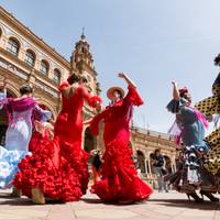 This morning includes a guided tour around Seville covering Maria Luisa Park, Plaza de Espana, and the exterior of the Cathedral and Giralda bell tower, then you'll walk through the Santa Cruz neighbourhood. Following lunch at a local restaurant, the afternoon is yours to do as you like. Later, you'll take the included high-speed train back to Madrid in the late afternoon, though you'll need to arrange your own way to get to the station.